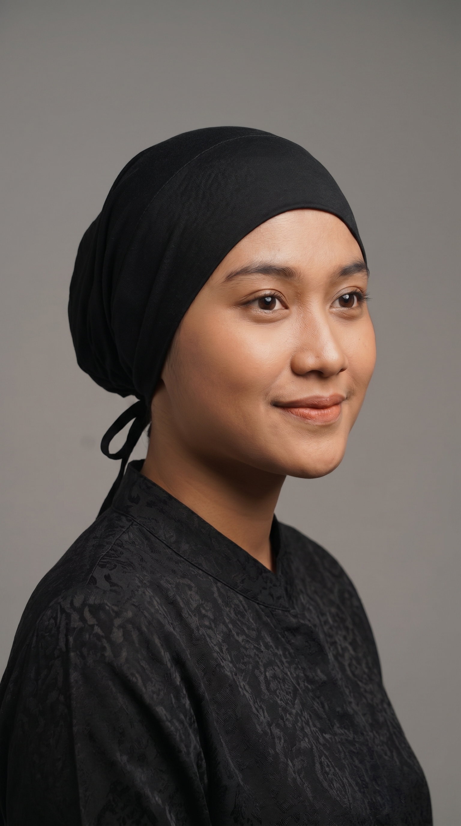 Satu-satunya ciput dengan bahan Rayon Cool-Tech yang tidak menekan telinga dan tetap tegak di dahi.